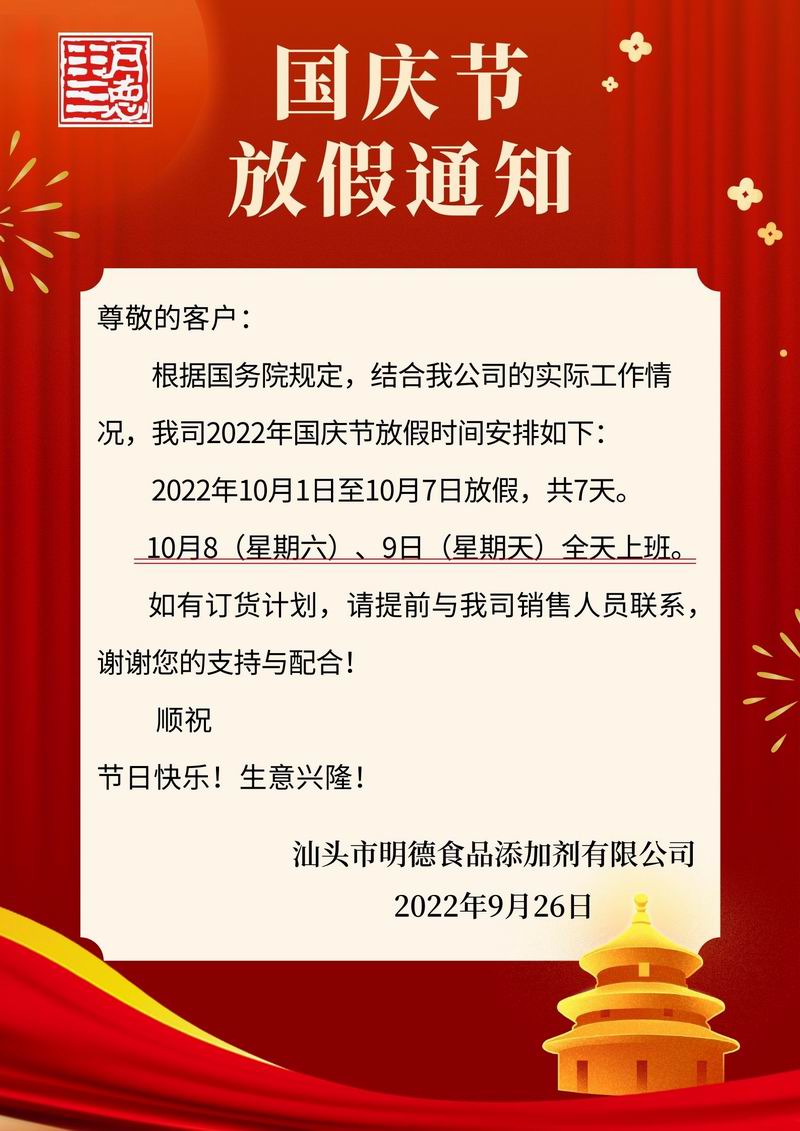 2022年國慶節(jié)放假通知